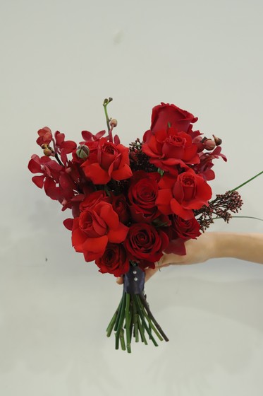 장미와 레드톤 꽃으로 믹스된 부케입니다.