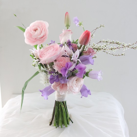 연핑크와 연보라를 믹스하여 제작한 부케입니다. 여성스러운 느낌의 부케로 사계절 추천드립니다.