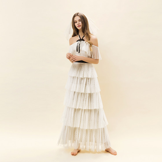 여리여리한 망으로 층층이 러플을 강조한 디자인입니다.