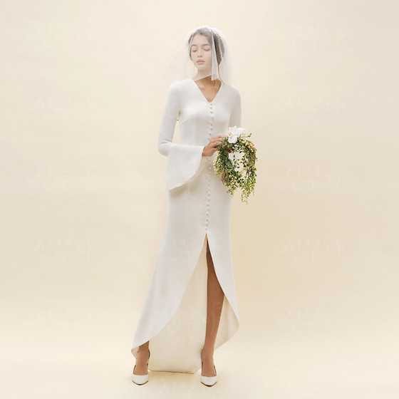 V네크라인에 스커트 가운데 슬릿이 포인트인 드레스입니다.