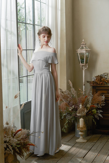 오프숄더로 어깨와 쇄골 라인을 돋보이게 연출해주며