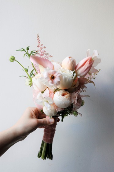 D76 화이트튤립+연보라 포인트 부케