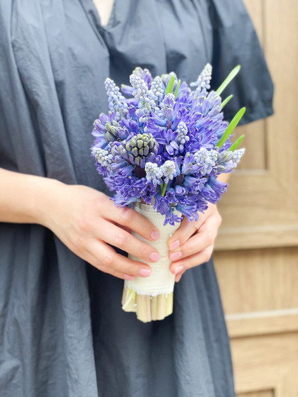 히야신스를 메인으로 하고 무스카리를 중간중간 넣은 부케입니다. 향기로운 부케를 원하시는 분께 추천드립니다. 추천 계절 : 여름, 겨울